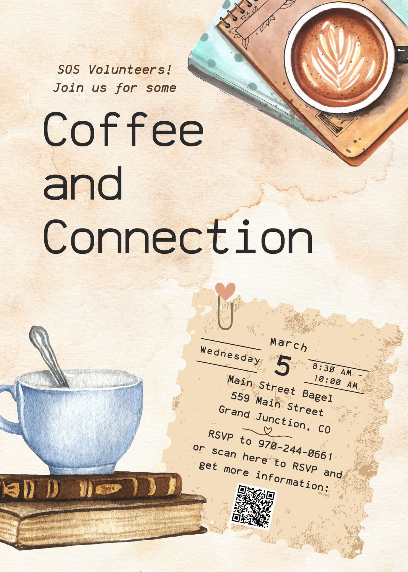 SOS Volunteers - Let's get together! Gather with us at Main Street Bagel on March 5th from 8:30am-10am. This will be a great opportunity to meet the new ADRC Coordinator, Madison Hadley, connect with other SOS volunteers, and enjoy a yummy treat.