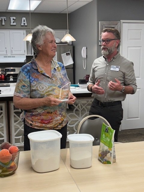 Ani Breedlove said, “I want to personally express my appreciation for Cathy. She has built supportive relationships with the residents who regularly attend her classes. She has a wonderful rapport with the group and makes sure everyone feels included.” Breedlove added,” Cathy makes sure our residents are set up with tea and cookies before she starts cooking the recipe of the day. Her glowing smile and laughter add to the ambiance.”